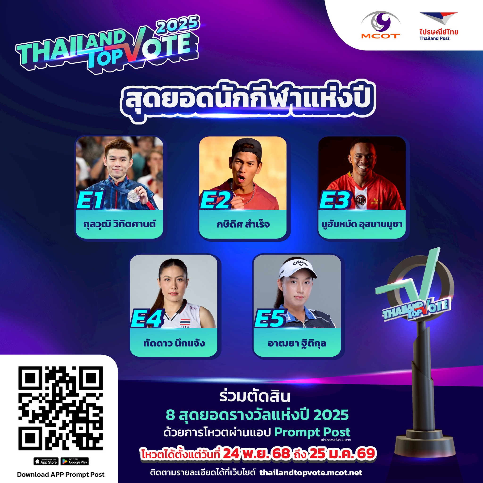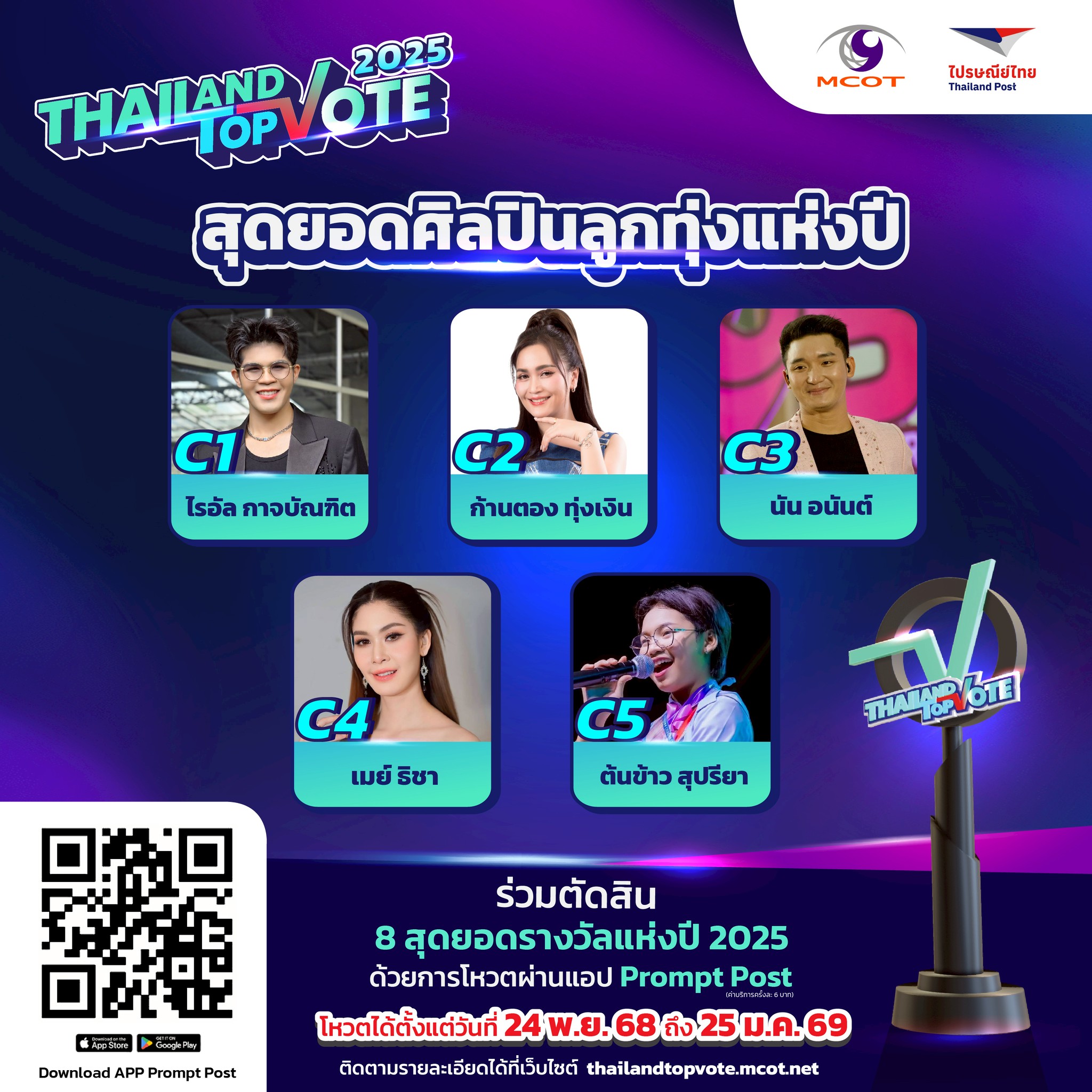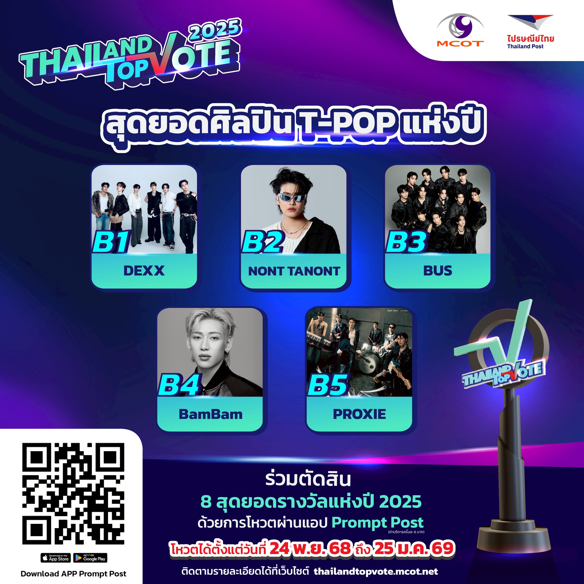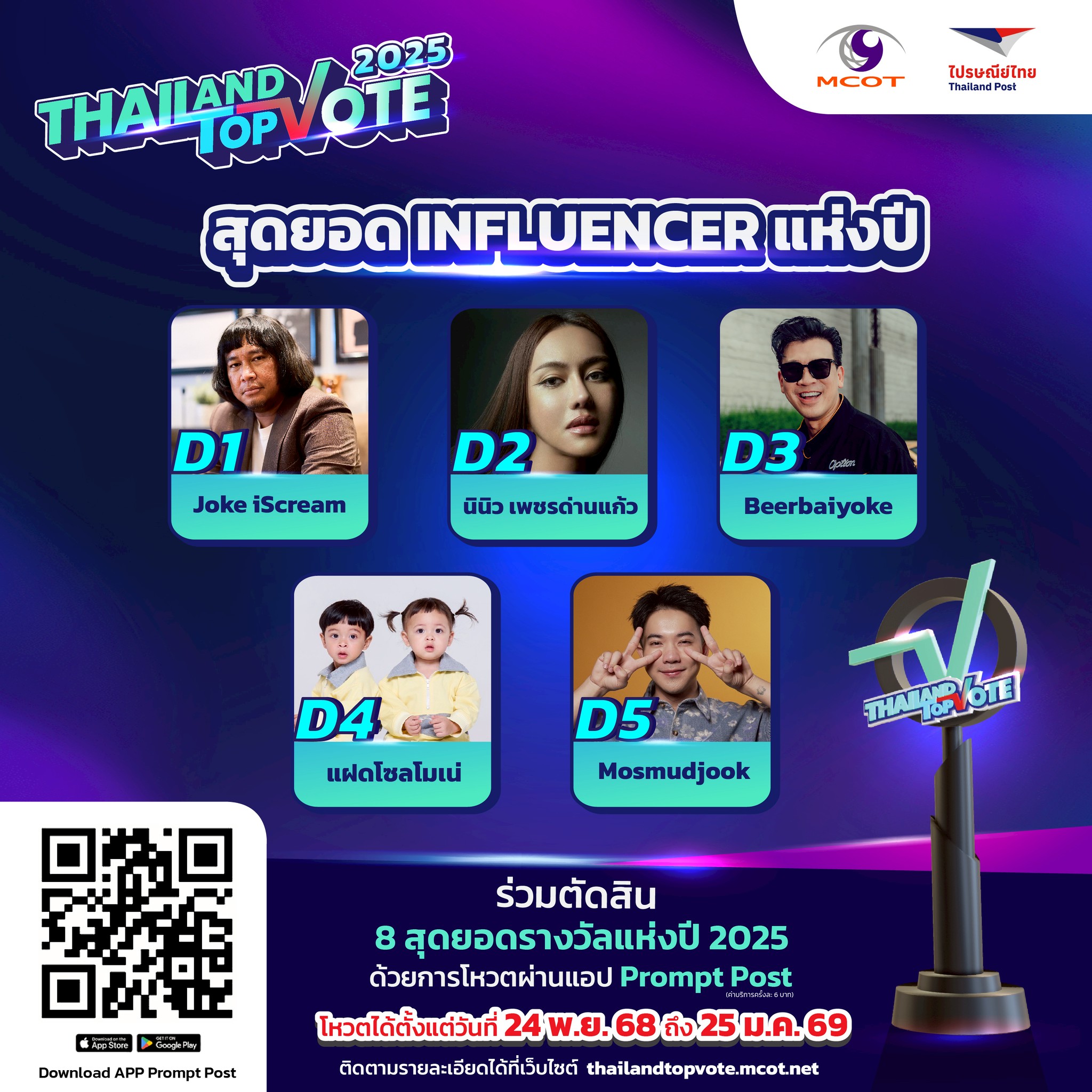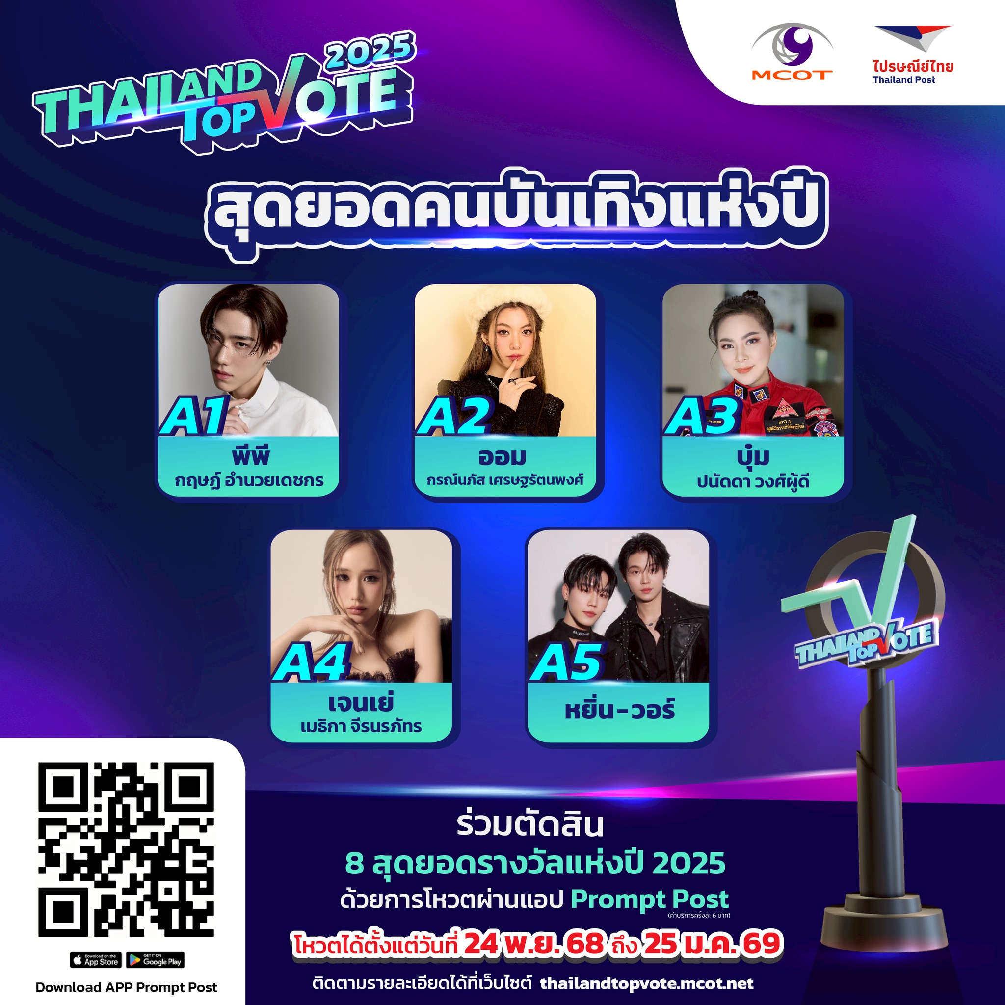 เปิดโผอย่างเป็นทางการสำหรับ Thailand Top Vote 2025 ที่เผยรายชื่อ TOP 5 สุดยอดรางวัลแห่งปีทั้ง 8 สาขา ดังนี้