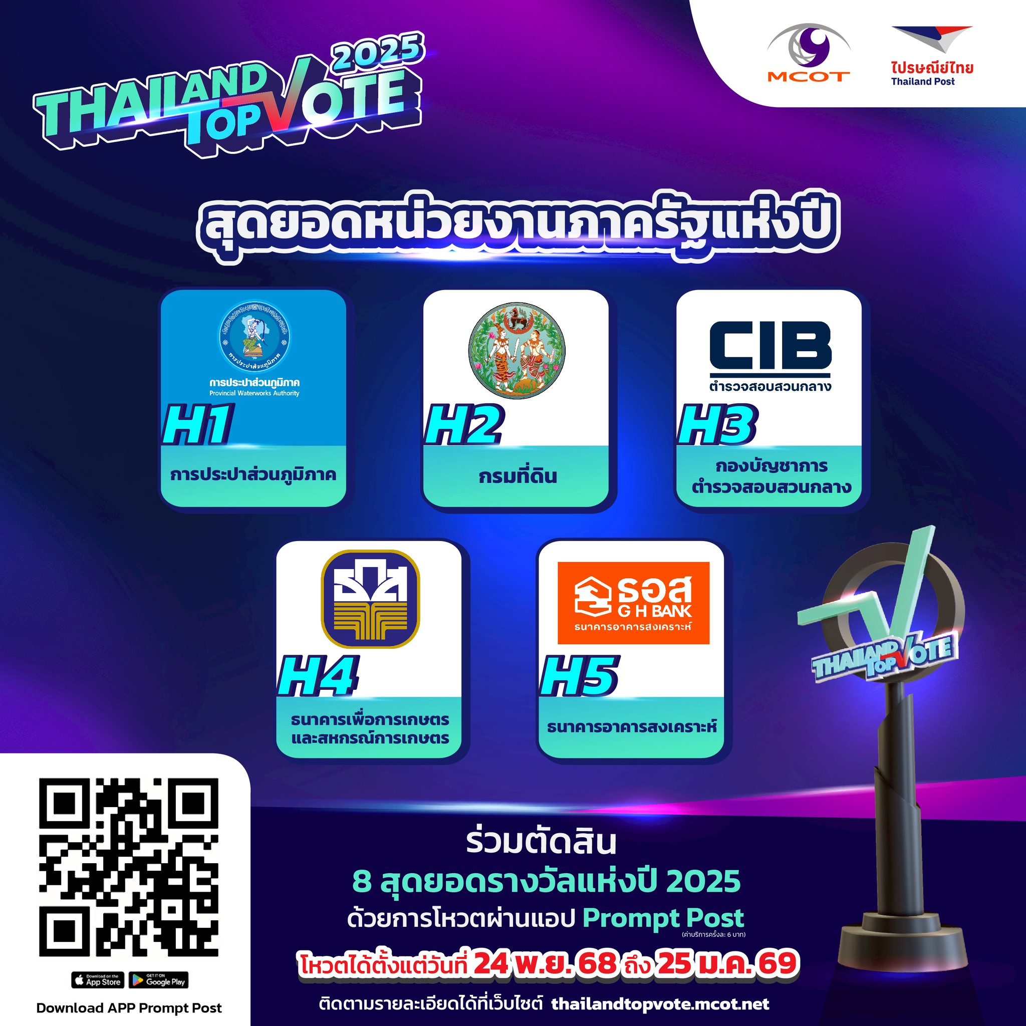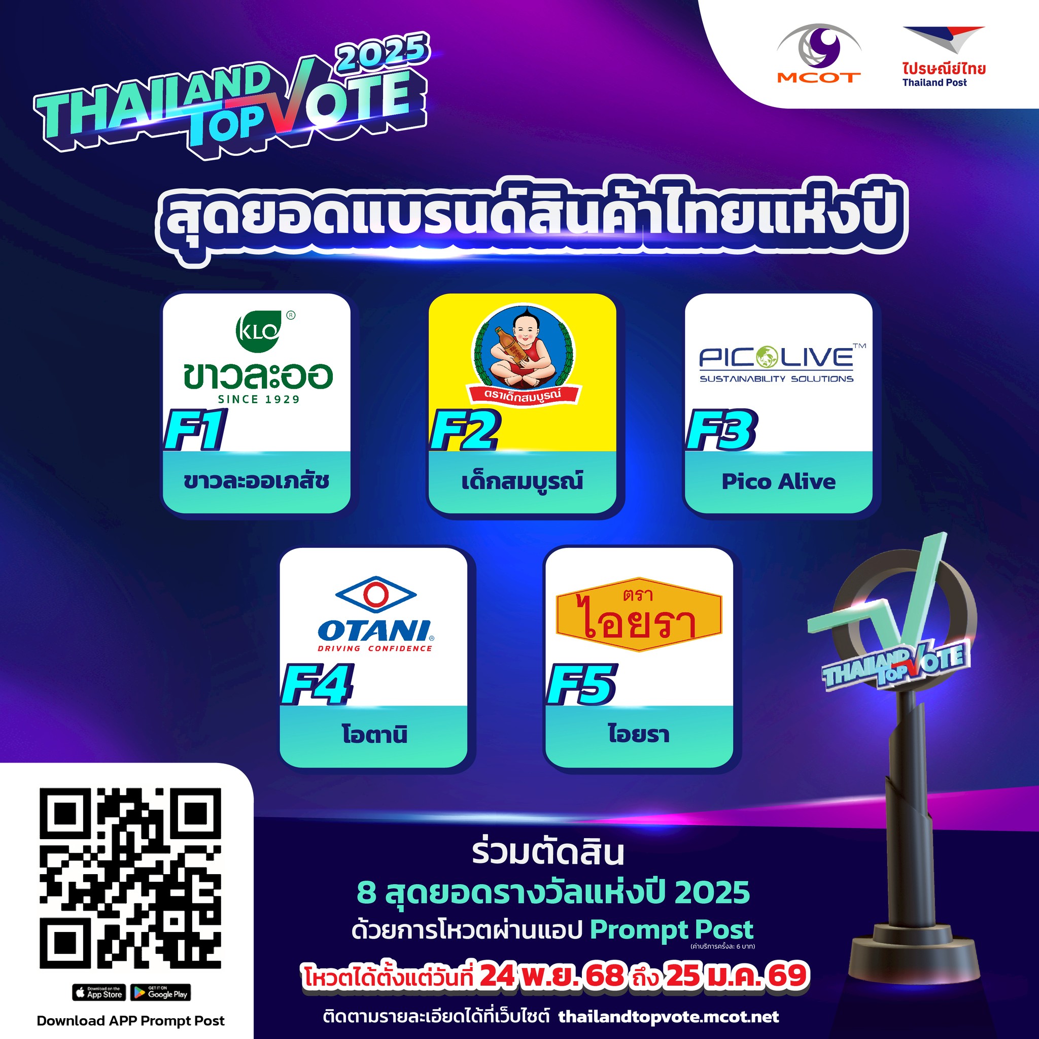 เปิดรายชื่อ TOP 5 สุดยอดรางวัลแห่งปี 2025 ทั้ง 8 สาขา ของ Thailand Top Vote 2025
