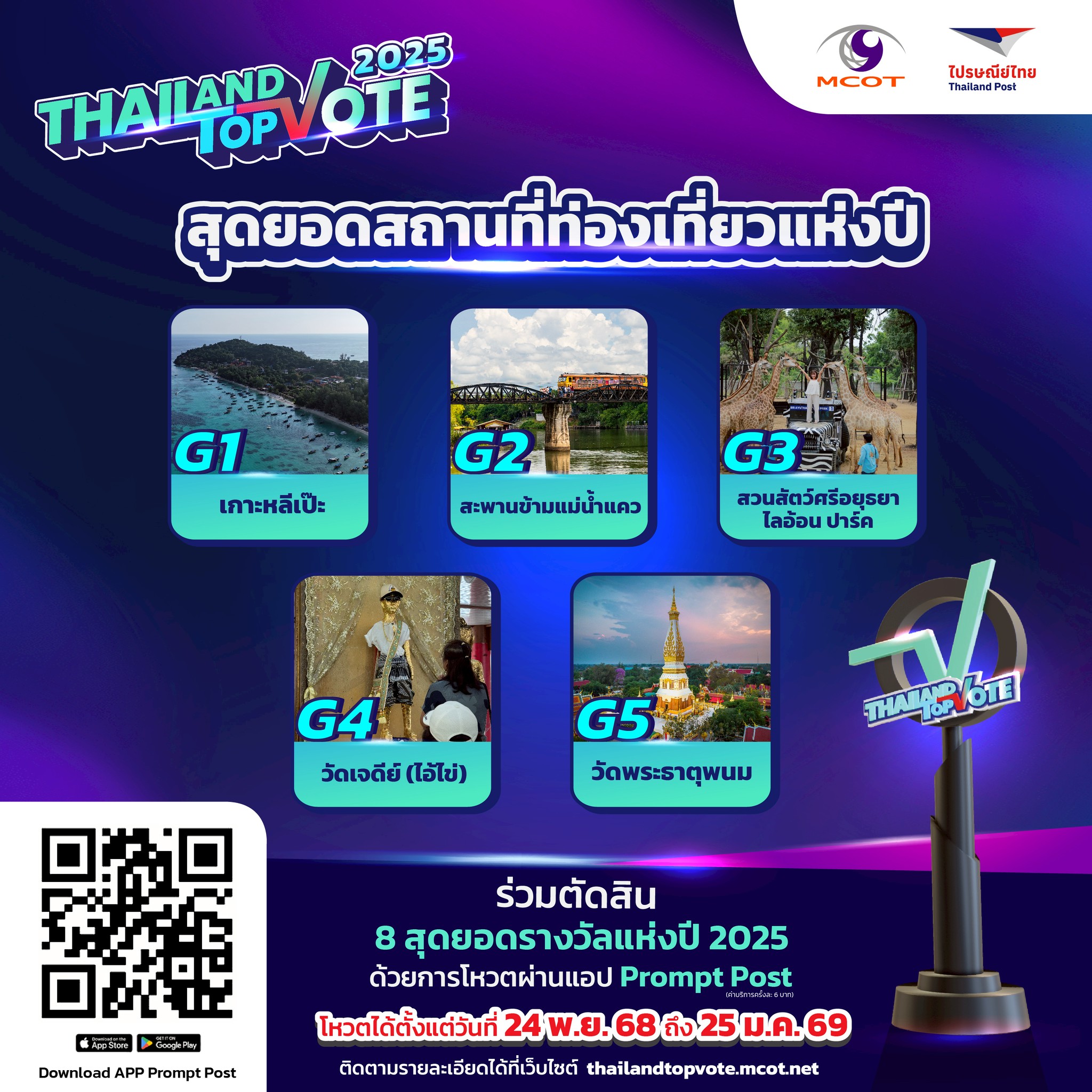 สามารถติดตามรายละเอียดได้ที่เว็บไซต์ thailandtopvote.mcot.net