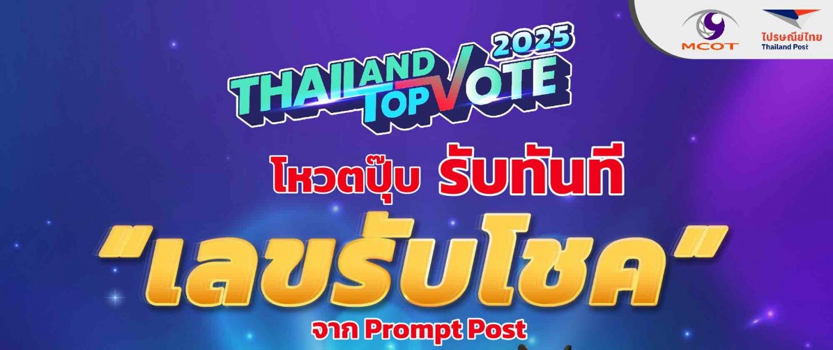 ประกาศรายชื่อผู้โชคดีกิจกรรม “เลขรับโชค” ทั้งหมดในวันที่ 30 มกราคม 2569 ผ่านทางเว็บไซต์ thailandtopvote.mcot.net